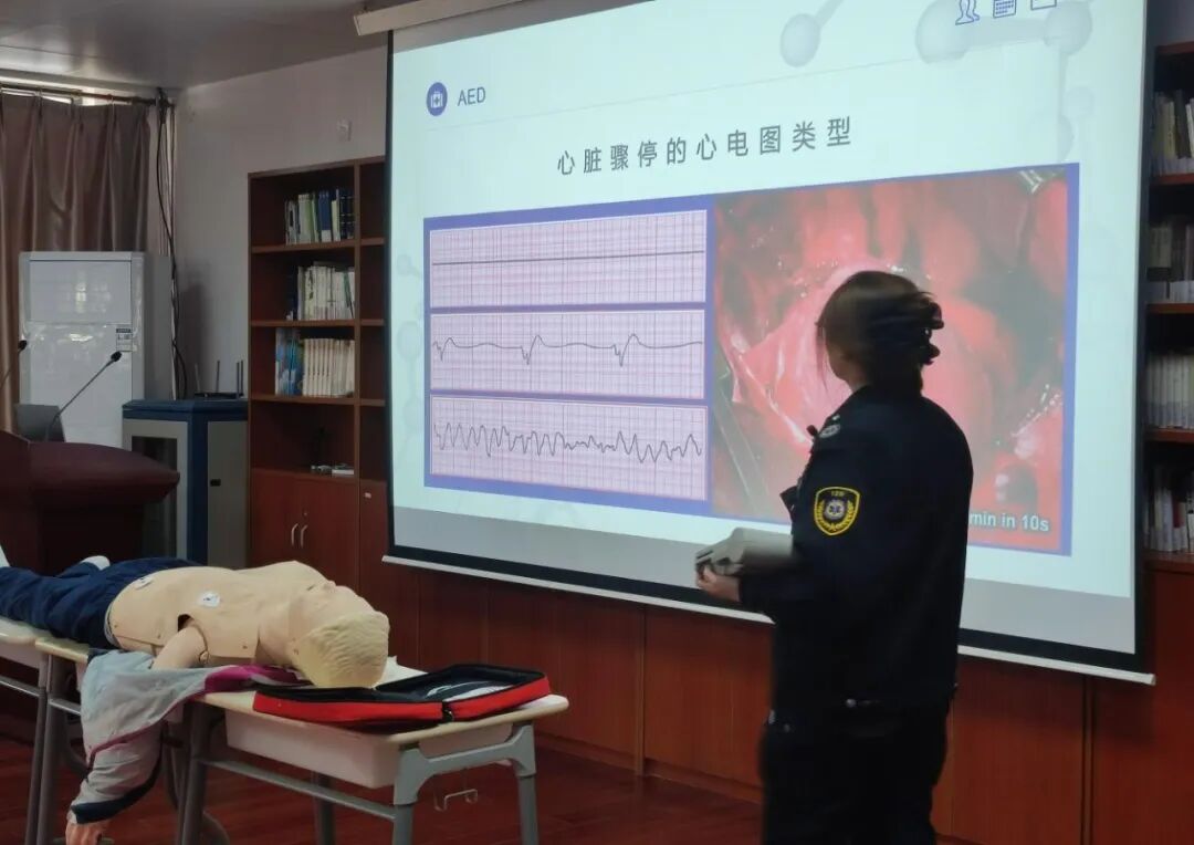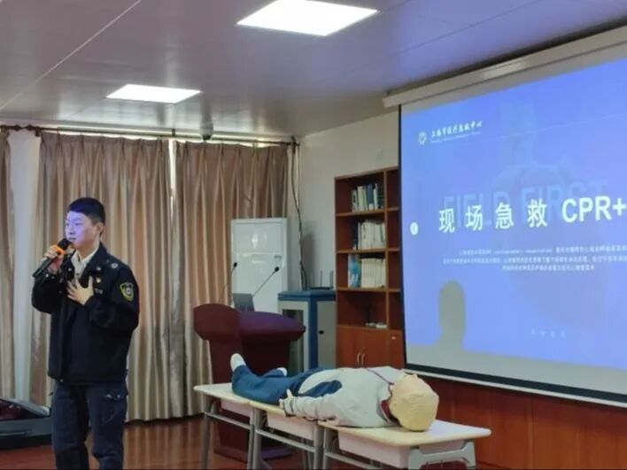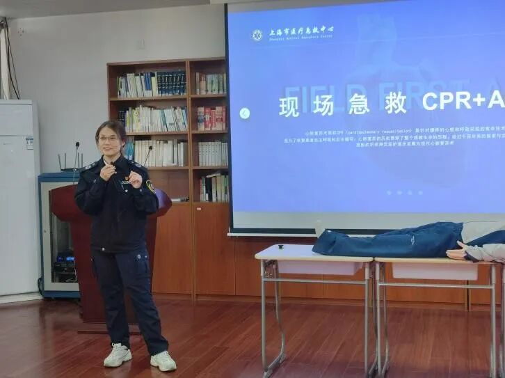 “你相信光吗?”急救中心的授课医生“奥特曼伊森”以诙谐幽默的脱口秀方式开场,通过精心准备的课件,将理论联系实际,讲解急救常识、意外伤害等相关救护知识,带领同学们走进急救课堂,从AED的使用、创伤止血方法、心肺复苏操作要领、人工呼吸、海姆立克急救等技能方面开展急救常识知识培训。