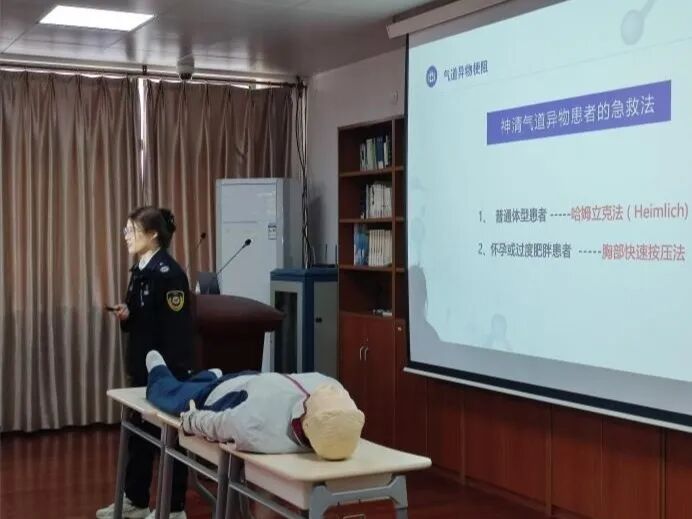 首先,工作人员细致的讲解了急救的意义以及重要性,同时针对普通体型与特殊体型两种人群,现场演练了正确的海姆立克理论急救法。