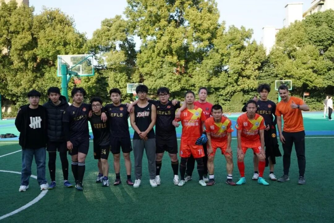 上半场在激烈的争夺中结束,随后,激动人心的下半场也随之到来!学生队换人,一改往日战术,主动出击。队员们配合紧密、节奏紧凑、变换灵活,教师队也不甘示弱,不断找机会突出重围,逐渐领先学生队。赛事的最后阶段,所有人都在竭力拼搏,场下观众的心也悬了起来。伴随着场上最后的哨声响起,上实剑桥师生足球赛正式落下帷幕!经过近一个小时的拼搏,教师队最终获胜,比赛也圆满结束!