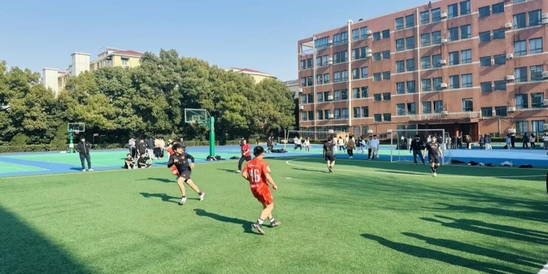 随着清脆哨声的吹响,这场冠军争夺赛就此拉开帷幕!学生、老师两大球队在赛场上大放异彩。两队势均力敌,现场欢呼呐喊声不断,场上的一举一动都牵绊着场下同学们激动的心。那矫健的步伐、飞速的反应、精准的传球尽显热血青年之气概!