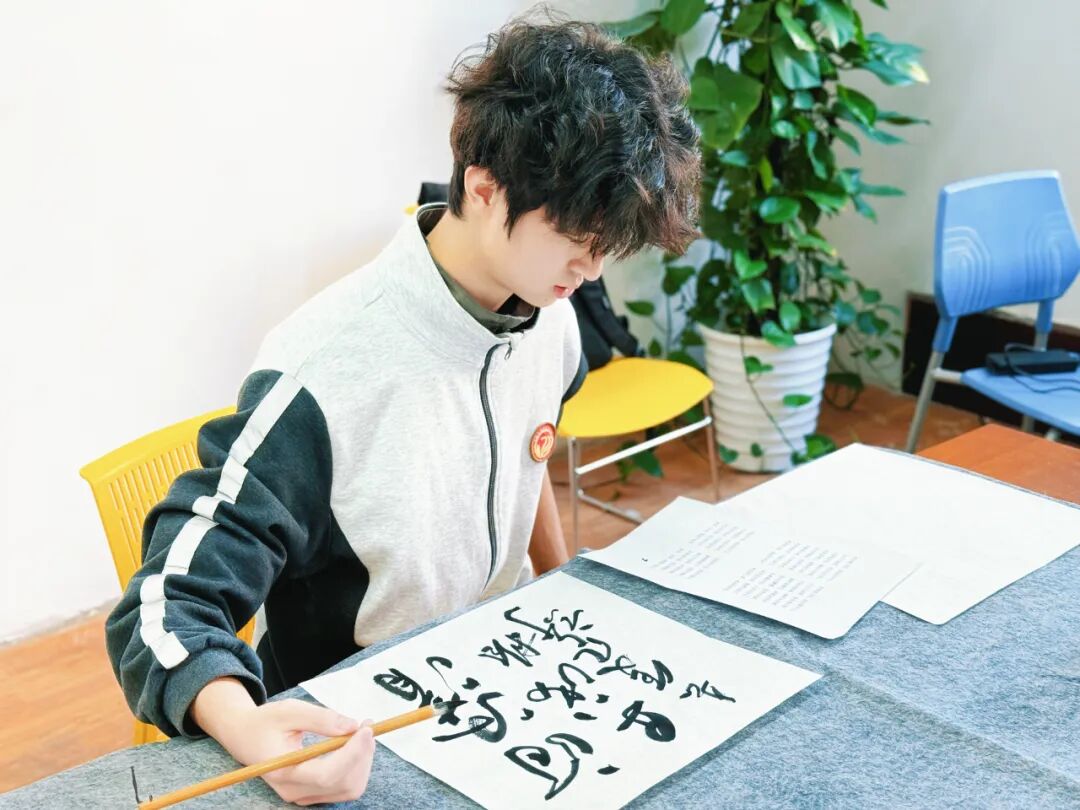 10月22日,软笔书法大赛如期展开。比赛现场,同学们凝神聚气,挥毫泼墨,笔尖游走于宣纸之上,留下或苍劲、或清秀的字迹。一横一竖,藏锋守拙;一撇一捺,尽显风骨。轻点如青峰含翠,泼墨似云海翻腾。每一幅作品,不仅是技法的展现,更是对中华文化精神的深情诠释。
