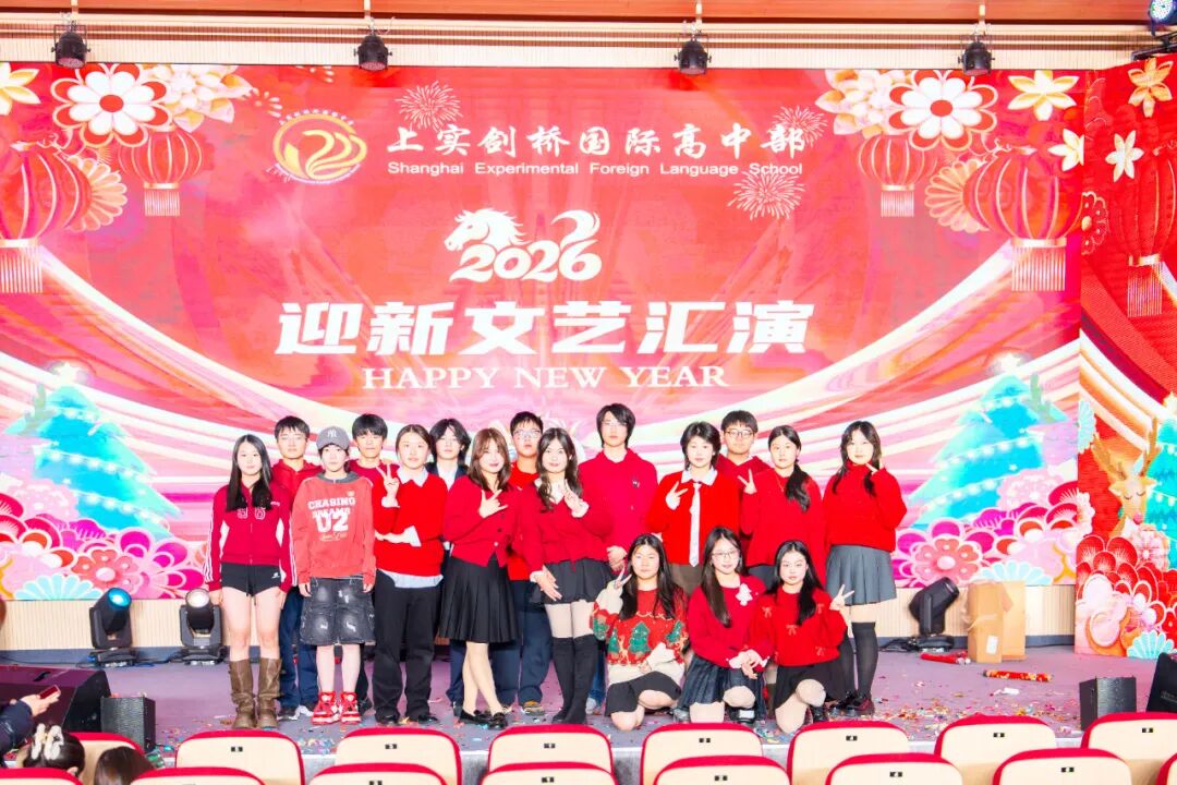 在全场“新年快乐”的欢呼声与掌声中,三个小时的2026上实剑桥浦西校区迎新汇演圆满落幕。感谢所有倾情演出的同学、幕后默默付出的老师与学生会成员。也祝愿全体师生在新的一年里,心怀热爱,步履不停,跨越云浪,乘风而行。