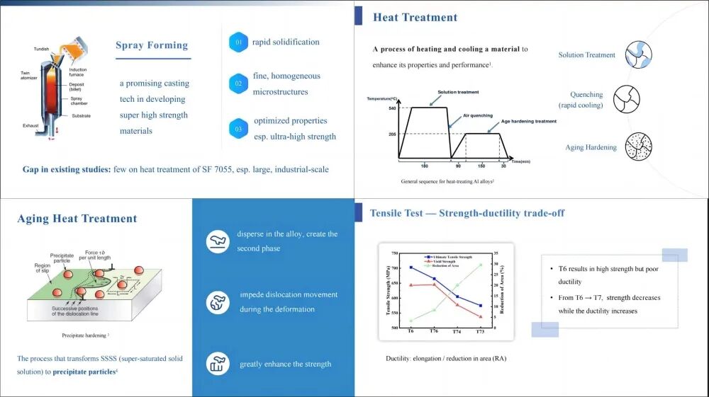 完成了文献综述之后,更具挑战的是实验的设计和实施。我充分利用一周的圣诞假期,沉浸在工厂和实验室中,在工程师们的帮助下,顺利完成了金属的热处理实验和样品的各种测试,收集了很多宝贵的一手资料。这次经历极大地提高了我的实践技能和沟通能力,当时又面临期末考试和化学竞赛的准备,所以也锻炼了我的时间管理和抗压能力。