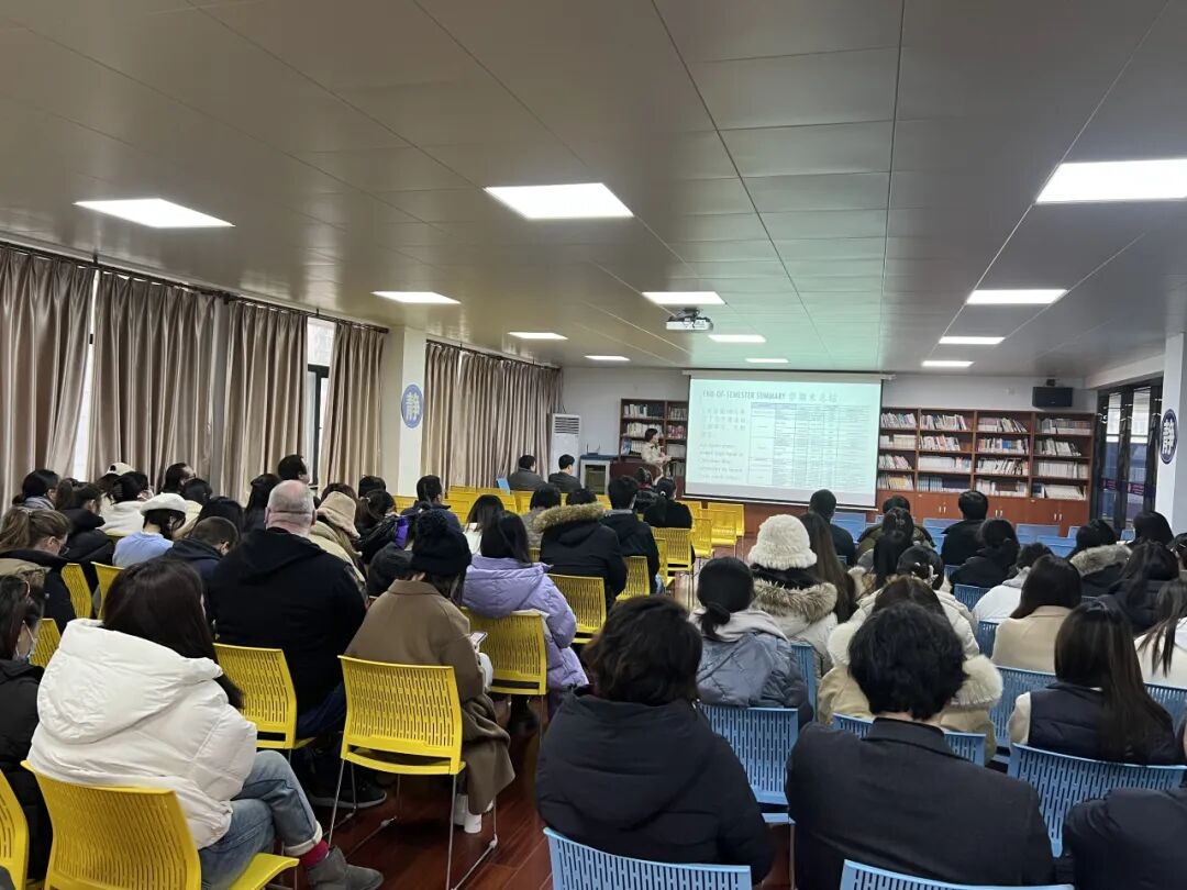 1月21日,上实剑桥杨浦校区召开期末总结大会。全体教职工于四楼阅览室参加会议,总结本学期的工作经验,共同反思共同进步。会议由执行校长徐成最主持,总校长袁光明、副校长郑赋琦做了发言。