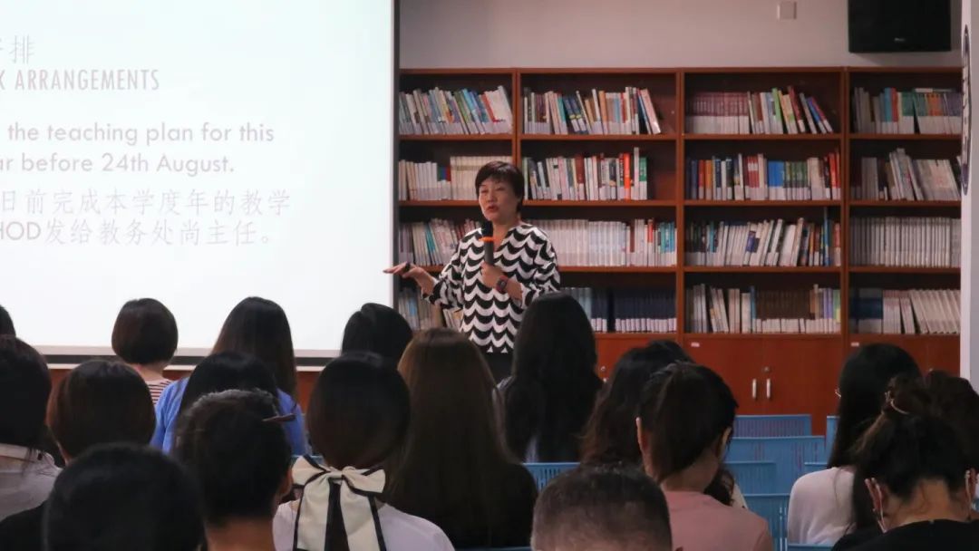 副校长郑赋琦首先对2022-2023学年的本校全球大考成绩做了简要的分析,并要求老师们对自己所教授学生取得的成绩进行详细的分析,并思考几个问题:今年的成绩和往年成绩相比如何?在几种不同题型的卷子里,哪一种卷型学生得分最好?哪一种最差?在教学中应该如何改进?是否有特别薄弱的学生?怎样去帮助这些学生?