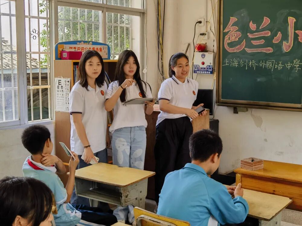 本月初,上实剑桥国际高中支教小分队前往了江西大余县兰溪村的希望小学开展支教活动。到达目的地一下车,迎面走向我们的是一位可爱的小妹妹,她十分欢迎我们的到来并热情洋溢地为我们介绍当地的红色历史文化以及学校的特色文化,随后又为我们准备了两小段的红色故事表演。从他们的眼神中透露出天真烂漫的气息。来到他们的教室后,不禁发觉我们当下的学习环境是多么优越。