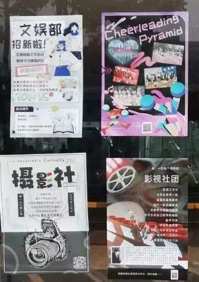 摄影社、篮球社、计算机社、推理社、美术动漫社、高达社、数学社、棒球社、啦啦操……三十多个社团争奇斗艳,每个社团都使出了自己的浑身解数,向同学们展示着社团生活的多姿多彩。在招新会场还有热情接受新同学提问的社长和老社员。他们耐心解惑、热心宣传,新生同学们纷纷踊跃参与其中,期待着后续能在社团里大展风采。