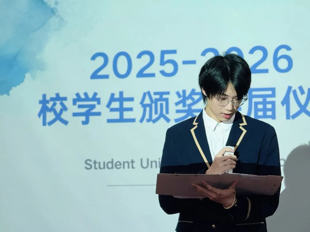 而同时作为2025-2026届新任学生会主席,黄秉瀚同学在发言中表达了内心的荣幸与责任感。他坦言深知主席职务所肩负的期望与重托,并郑重承诺将恪尽职守、勇于担当。感谢上一届学生会打下的坚实基础,并表示新一届团队将延续服务精神,精诚合作,积极倾听同学需求,务实推进各项工作,全力组织好校园文化活动,不辜负学校与同学们的信任。