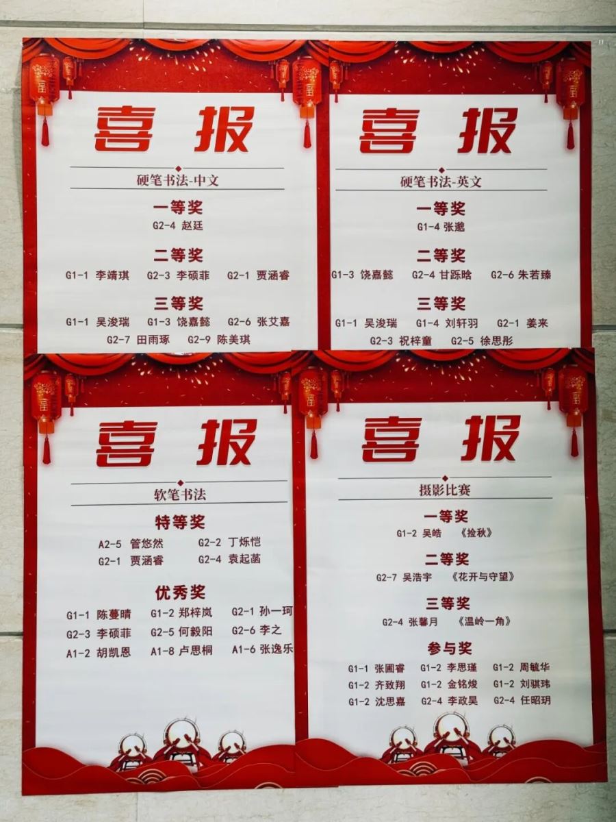 本次的书法比赛和摄影比赛让我们感知到了同学们对书法的热爱及造诣,以及对艺术的追求,经过中文组与学生处评委们对每张作品的细细琢磨以及认真负责的筛选,我们决出了许多优秀作品,并将作品裱框,展示于2号楼大厅,为校园增添色彩,也为同学们塑造了古色古香的文化氛围和摄影艺术氛围。