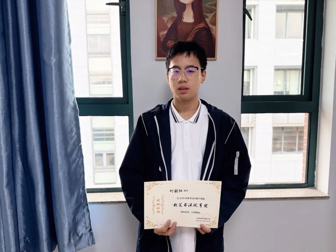 中文硬笔,笔锋刚劲,架构严谨;英文书写,流畅优雅,自带国际风度。10月14日举办的英语硬笔书写大赛现场,同学们以笔为桥,连接东西文明。字如其人,迹载其心。规范的书写不仅提升了学习品质,更在横竖撇捺间培养了审美能力,修炼了从容心境。参赛作品或工整清秀,或洒脱流畅,展现了同学们扎实的语言功底与独特的艺术个性,彰显上实学子立足传统、放眼世界的文化自信。