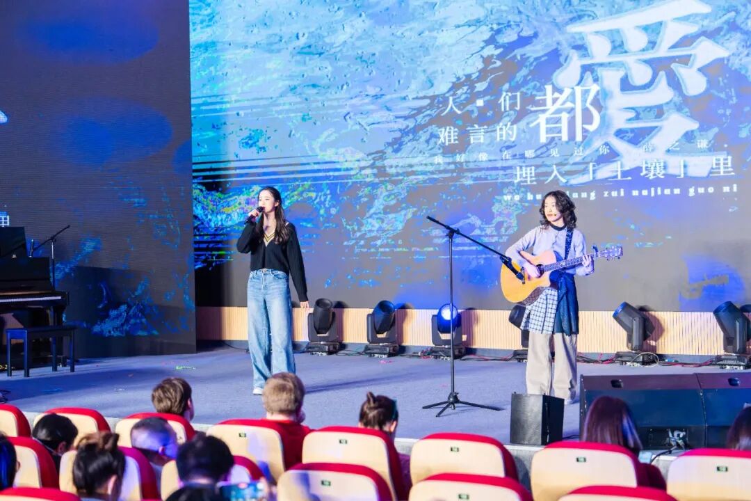 张宸赫、丁书砚、徐浠娜同学带来了他们精心准备的歌曲《刻在我心底的名字》,灯光打在他们身上,拉出长长的影子,歌声醇厚而富有感染力,将那些难以忘怀的记忆与名字,透过旋律深深烙印在每个人心底。