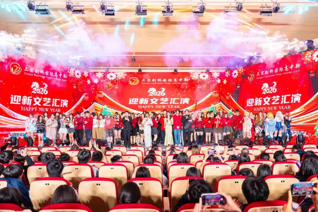 在全场“新年快乐”的欢呼声与掌声中,三个小时的2026上实剑桥浦西校区迎新汇演圆满落幕。感谢所有倾情演出的同学、幕后默默付出的老师与学生会成员。也祝愿全体师生在新的一年里,心怀热爱,步履不停,跨越云浪,乘风而行。