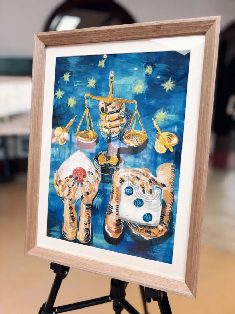 我的作品以骰子和天平为媒介探讨不确定性。骰子代表随机性,天平象征权衡。二者共同呈现了生活中决策的本质:在不可预测的环境中,每个选择都是概率与判断的结合。这种关系构成了人类面对未知时的基本应对方式。