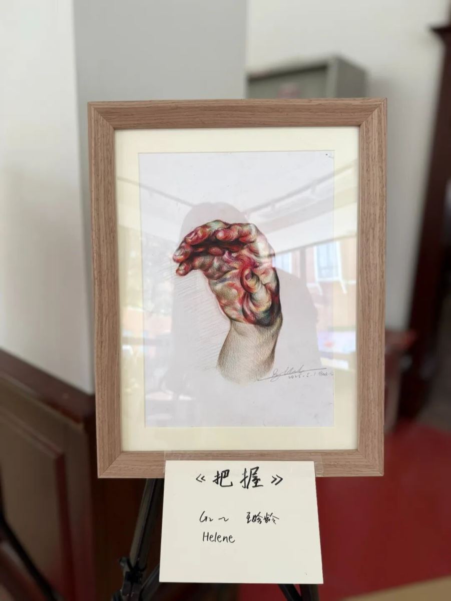 这幅作品是我在课程中的一次珍贵实践。衷心感谢老师在整个创作过程中给予的专业指导和细致点拨。通过这次练习,我深刻体会到彩铅艺术的精妙之处——那些细腻的笔触如何通过层层叠加呈现出柔和过渡,又如何以丰富的色彩变化塑造出手部的厚重质感。特别是对肌肤纹理的表现,让我学会了观察和捕捉那些微妙的光影层次,从而使手部的体积感和肉质色彩能够生动地跃然纸上。