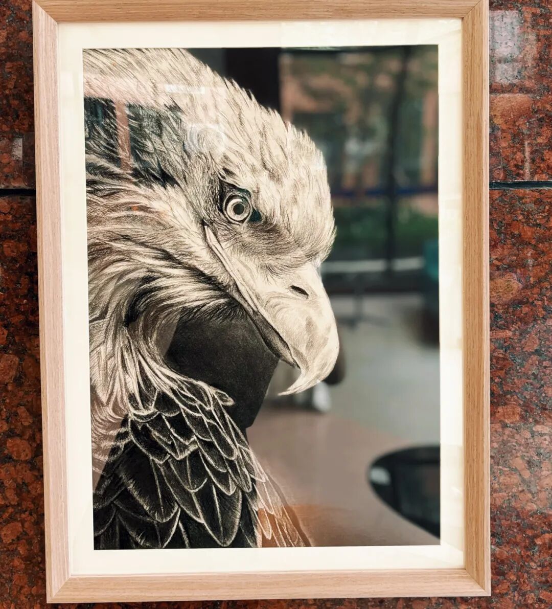 这幅炭笔素描以雄鹰为主题,通过深浅交错的线条与细腻的明暗对比,刻画了鹰的凌厉眼神。炭笔的粗犷质感强化了羽毛的层次与力量感,背景留白则凸显主体的孤傲气质。作品既展现猛禽的野性生命力,也隐喻自由与征服的象征意义。传统素描技法与现代构图结合,传递出自然界的壮美与敬畏。