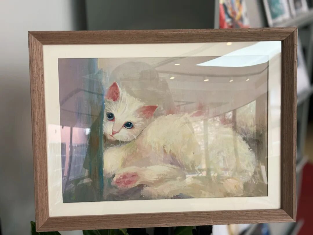 这幅油画以一只纯白小猫为主题,通过细腻的笔触与丰富的藏色技巧,在柔和的白色毛发中隐现蓝紫、浅粉,黄绿等微妙色调,赋予画面生动的光影层次。小猫圆润的造型与懵懂的眼神传递出天真与温暖,背景的虚化处理更凸显主体的灵动。我想用色彩的多变来展现动物毛绒的层次,使可爱的生命更加生动。