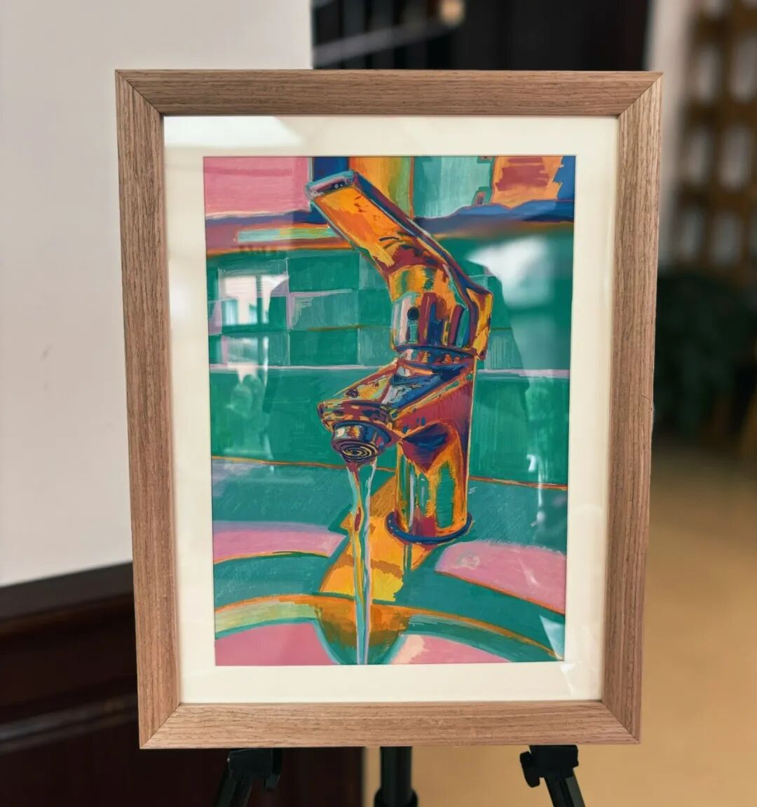这幅作品是我“Preparation”艺术项目中的一部分,使用了水粉、水彩和色粉等材料。画面描绘的是画画前准备阶段的工具和颜料,像是画笔、水杯、调色盘和各种颜色的颜料。这个场景表现了一种安静但充满期待的氛围。通过描绘这些细节,我想表达出创作前的专注状态,以及面对空白画纸时那种即将开始的准备感。