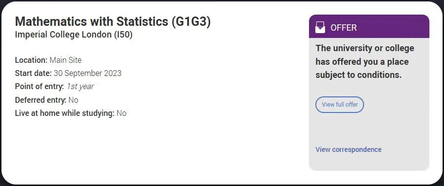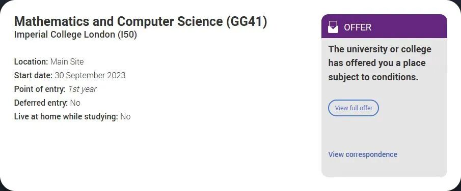 我热衷于将数学中的结论应用于其他学科,它极大地帮助了我理解与记忆许多的公式。因此,在A1第一学期我就确定将主申方向定为数学,同时发现帝国理工有数学和计算机的结合专业,可以双面满足我对学科知识的渴望,虽然这个专业的淘汰率非常高,但是我依然决定放手一搏,现在看来,这也是一个非常明智的决定。