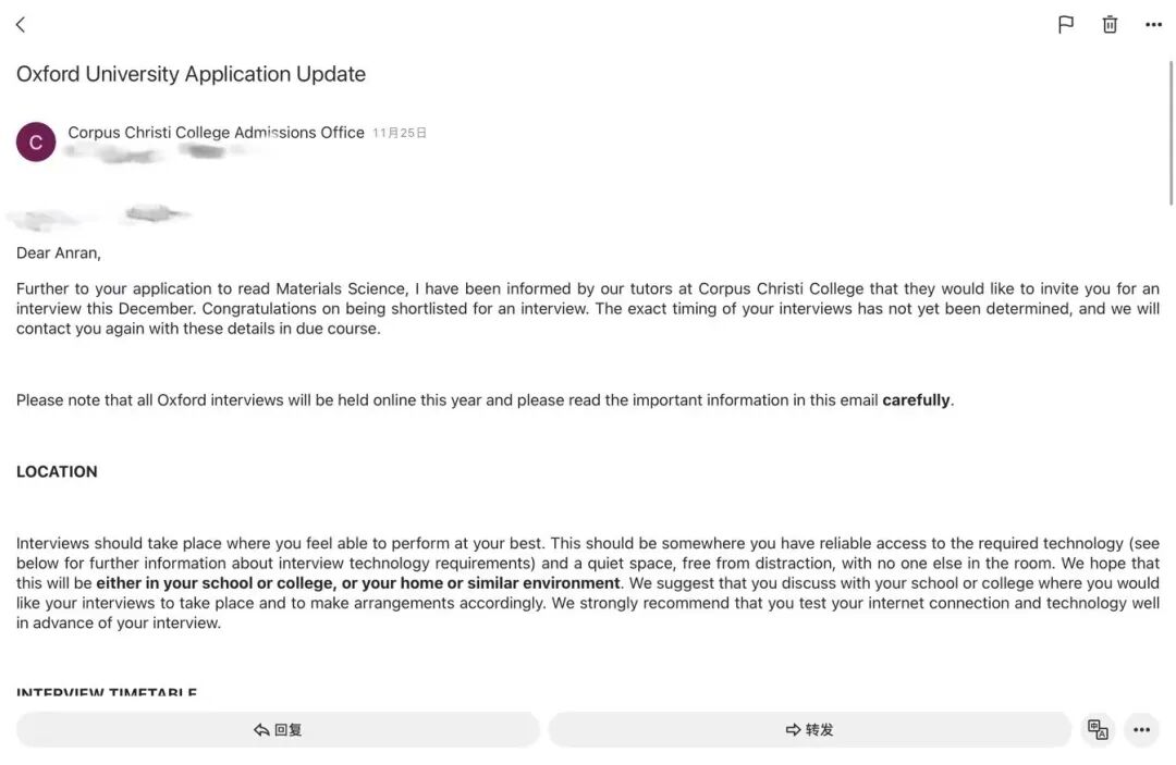 关于面试的准备,我的建议是模拟面试很重要,但也不需要太多。因为不管是在帝国还是在牛津的面试中,教授们常常会有出其不意的出题方式,和平时模拟面试的风格迥异,如果进行过多的模面,反而会僵化自己的思维方式。比如我在准备面试中做了大量graph sketching和estimation等题,模面时也大多围绕这些题目展开,但在几场真实的面试中都没有遇到。我建议大家在巩固A-level学科知识的基础上,可以多看一些和所申专业相关的书籍和课程,拓展知识面,提高创新思维以及分析和解决问题的能力。