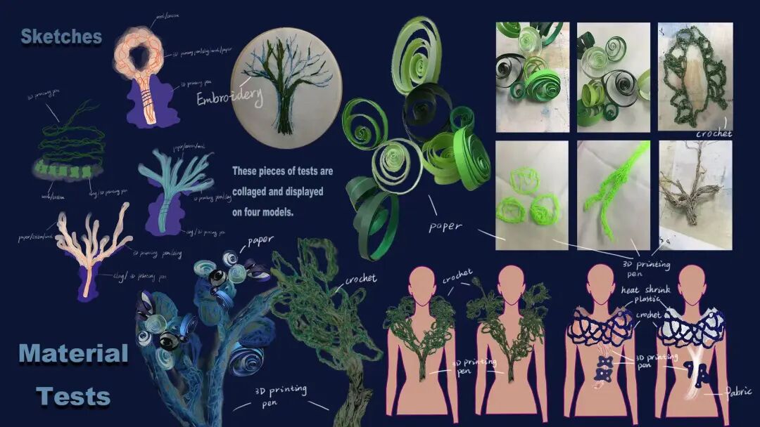 在做项目的过程中,我总是觉得自己知识储备太少,所以很喜欢做各种相关调研,试图了解更多东西。但在得到了很多信息以后,又会在信息筛选、确定主旨的时候陷入纠结。制作过程中我会尝试各种材料,所以在材料的组合和选择上也需要花很多时间。遇到思路卡壳,不知道如何进行的时候,我经常会找各种其他专业的朋友聊聊,得到一些关于项目的别的办法,以及一些新的建议。这一系列的过程都是我们将会在大学里反复经历的。